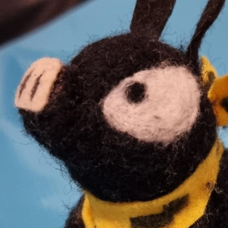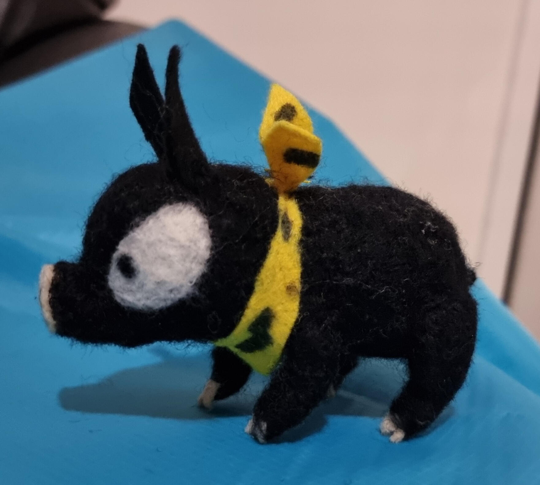 P-Chan from the anime/manga series Ranma 1/2. He has been made entirely with needle felting.