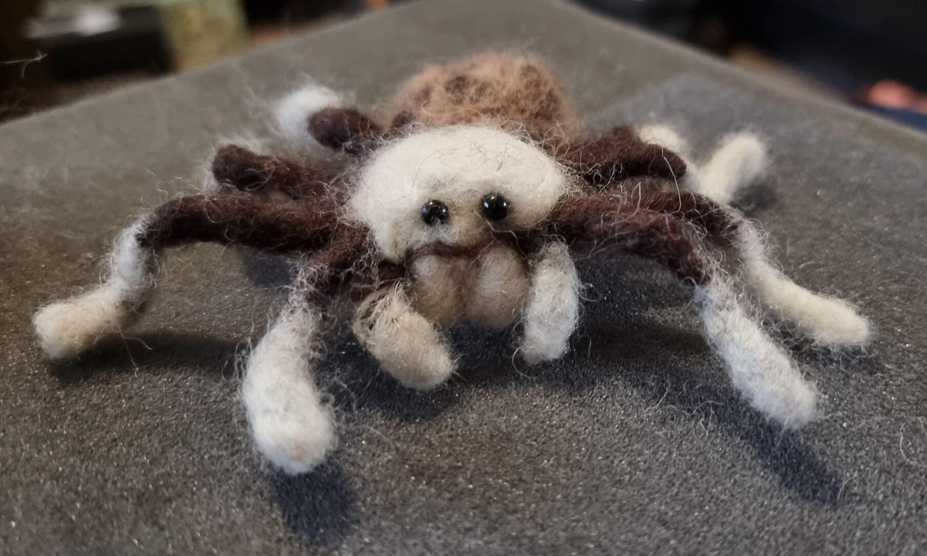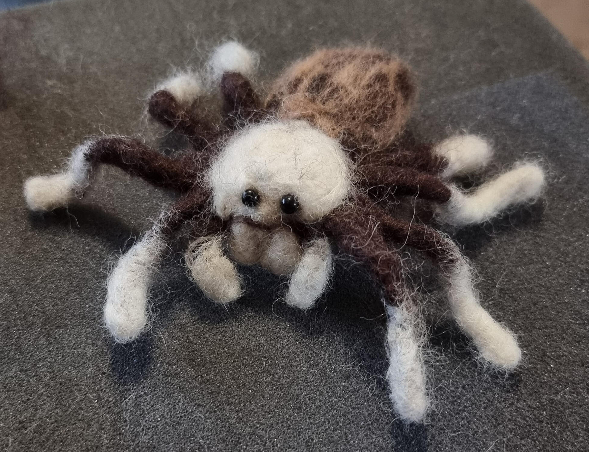 Arizona Blonde Tarantula (Aphonopelma chalcodes) made from pipecleaners and natural sheeps wool. This sculpture was made using needle felting.