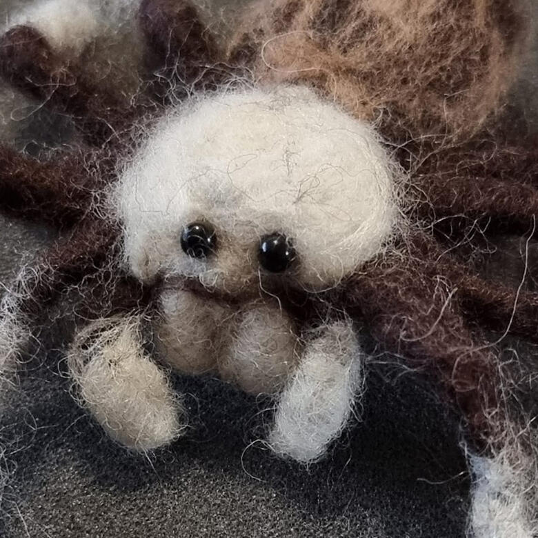 Arizona Blonde Tarantula (Aphonopelma chalcodes) made from pipecleaners and natural sheeps wool. This sculpture was made using needle felting.