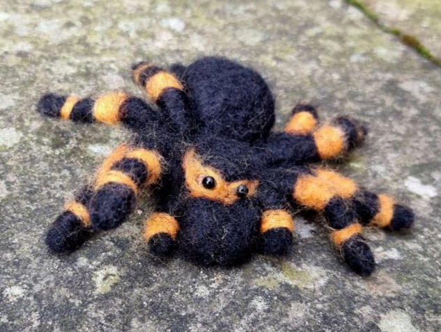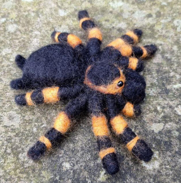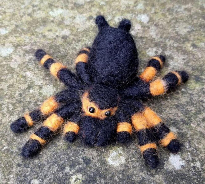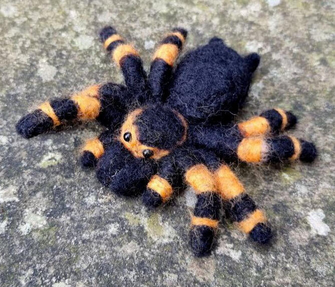 Mexican Red Knee Tarantula (Brachypelma hamorii) made from pipecleaners and natural sheep's wool. This sculpture was made using needle felting.